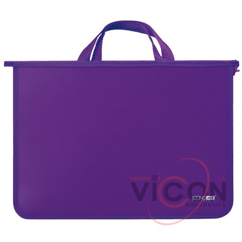 Material: polipropilenă. Grosime: 500 microni. Format: A4. Compartiment general cu fermoar și 2 compartimente în interior. Borduri de pânză. Fitinguri metalice.