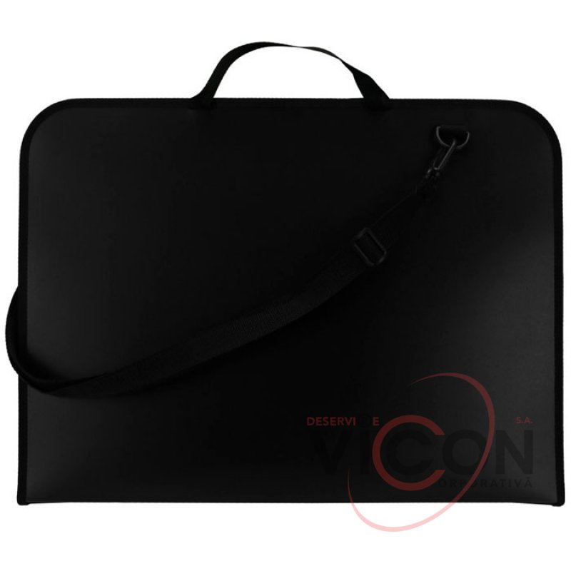 Material: polipropilenă; format A3; grosime 600 μm; dimensiuni: 38*52*3 cm; 1 compartiment cu fermoar; 1 buzunar interior, mâner din textil; curea de umăr cu lungime reglabilă; ideal pentru transportul articolelor de artă și a altor accesorii.