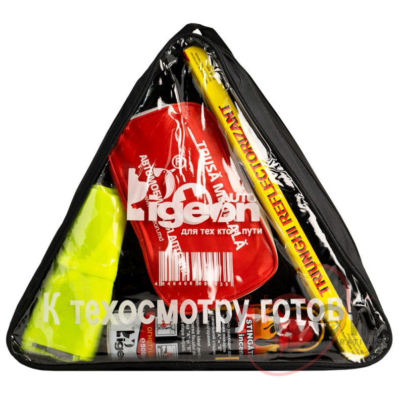 • Un set de șoferi: o geantă pentru accesorii auto cu mâner de transport convenabil, o trusă de prim ajutor auto, un stingător de 0,5 kg, un semn de oprire de urgență, o vestă reflectorizantă.