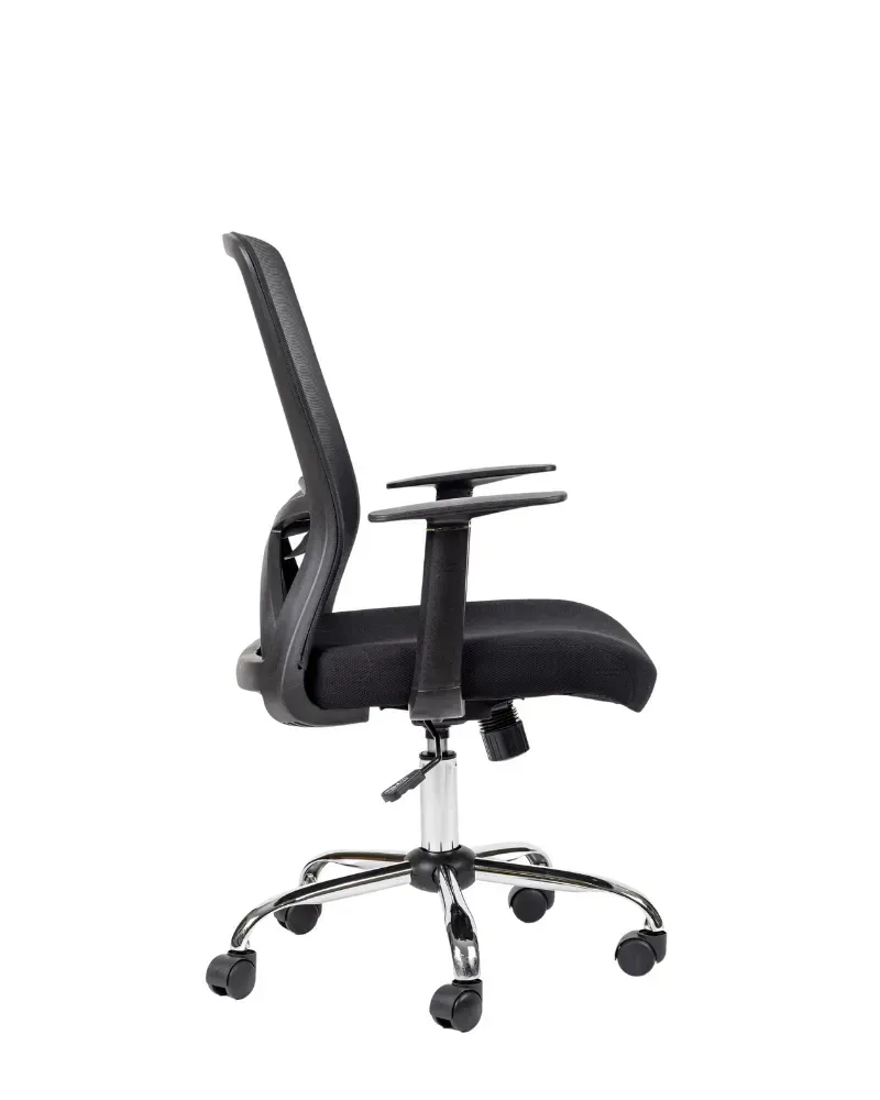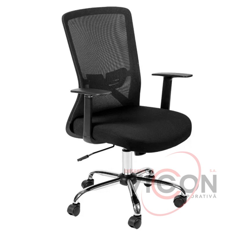 Spătarul este fabricat din plasă, ce favorizează ventilația și asigură o temperatură confortabilă. Șezutul este acoperit cu un material textil moale, garantând confortul maxim pe durata sesiunilor de muncă. Fotoliul dispune de suporturi pentru brațe din plastic, care îți furnizează un suport ergonomic pentru mâini și încheieturi. Acestea contribuie la ameliorarea tensiunii și a oboselii în timpul muncii.