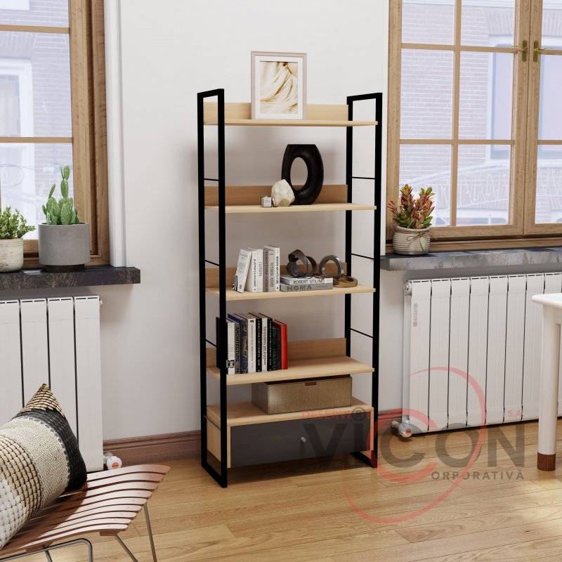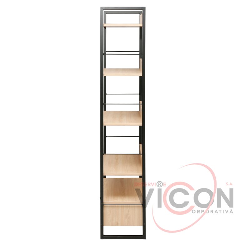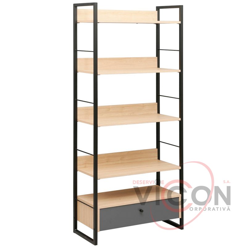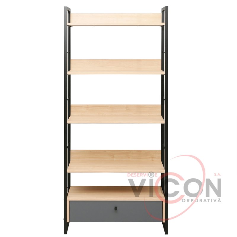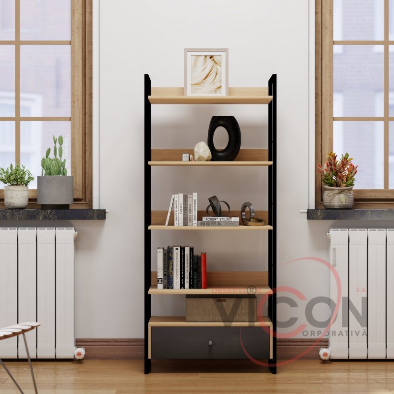 Raftul este dotat cu 1 sertar spațios pentru depozitarea discretă a obiectelor mici și 5 rafturi deschise, ideale pentru cărți, decorațiuni, plante sau accesorii. Datorită dimensiunilor sale — 70 cm lățime, 30 cm adâncime și 159 cm înălțime — se potrivește perfect atât în spații înguste, cât și în încăperi mai largi, valorificând eficient spațiul pe verticală.