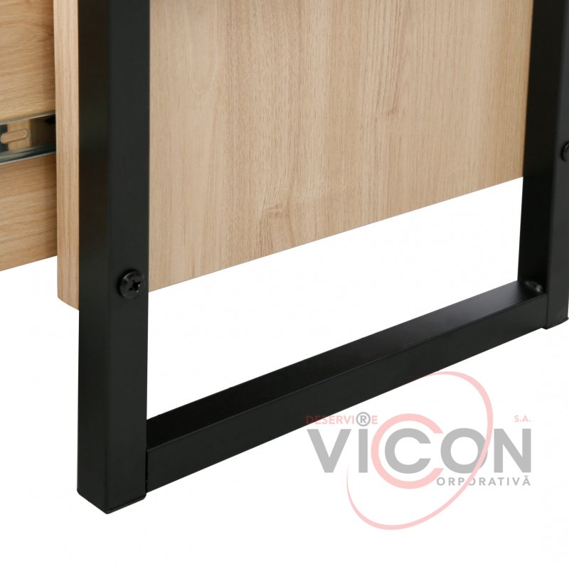 Raftul Alto este o piesă versatilă și modernă, ideală pentru living, birou, dormitor sau hol. Structura este realizată din PAL melaminat cu finisaj Stejar M37/M60, oferind un aspect natural, cald și elegant, potrivit pentru orice stil de amenajare. Cadrul metalic, vopsit în câmp electrostatic în culoarea negru P02, conferă stabilitate, durabilitate și o notă rafinată industrială.