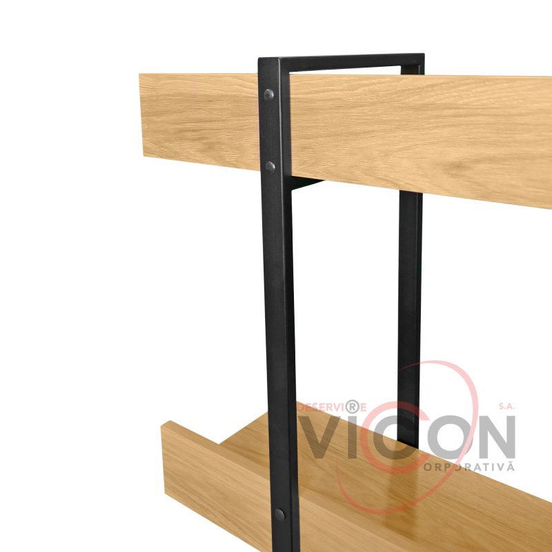 Etajera impresionează prin construcția sa solidă și durabilă. Polițele sunt realizate din PAL melaminat catuit de 18 mm, oferind rezistență la uzură și zgârieturi. Aceste materiale de înaltă calitate asigură o durată lungă de viață și mențin aspectul proaspăt al etajerei pe termen lung.