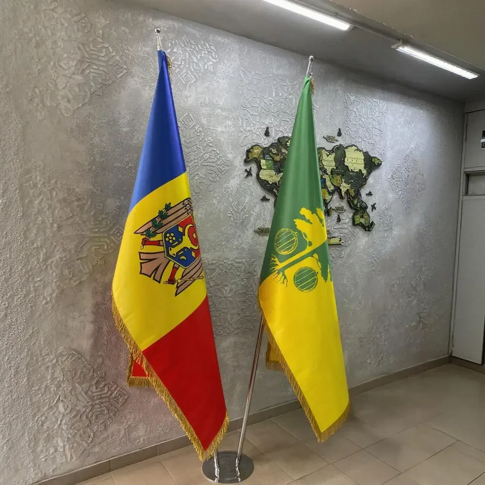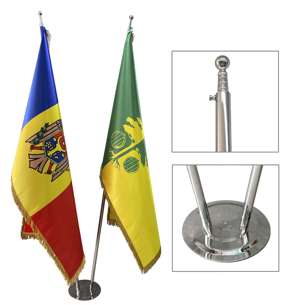 Suporturile metalice sunt durabile și asigură o prindere solidă a steagurilor.