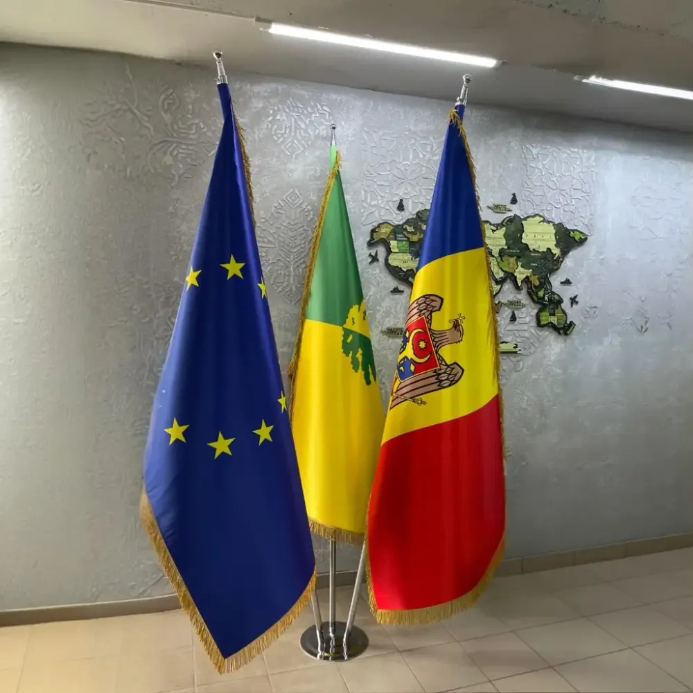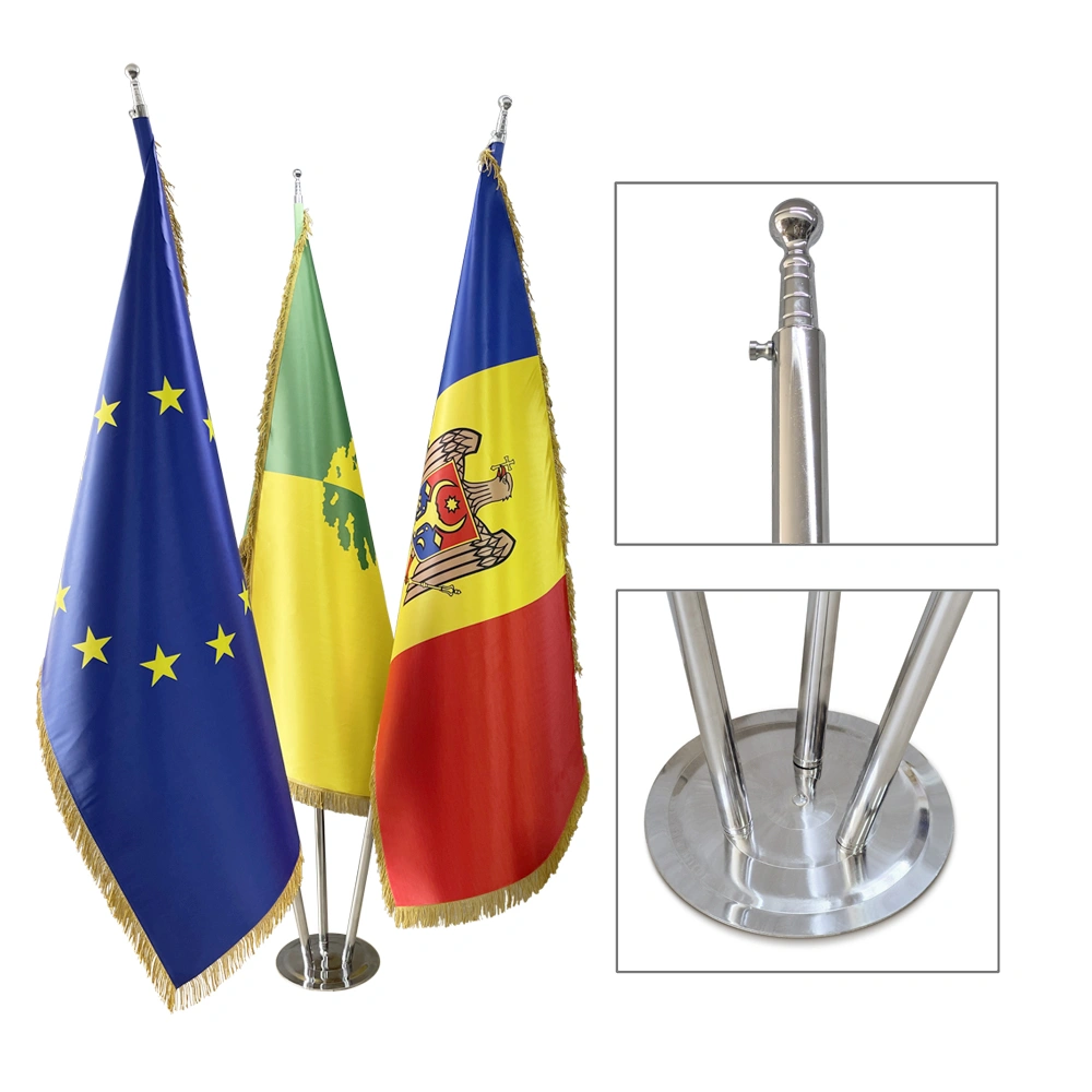 Suporturile metalice sunt durabile și asigură o prindere solidă a steagurilor.