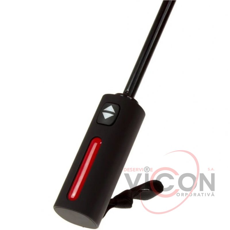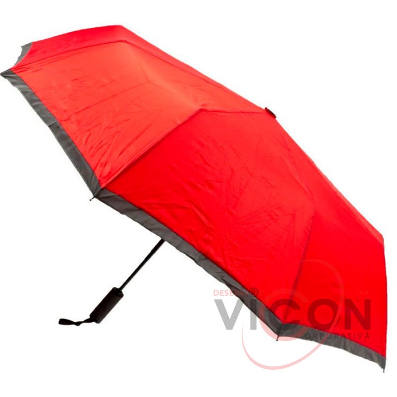 Umbrelă automată pliabilă. Culoarea cupolei: roșu. Număr de spițe: 8. Dimensiuni: lungime (în stare pliată) 32 cm, diametru cupolă 100 cm. Tija și spițele sunt fabricate din oțel/fibră de sticlă. Fiecare umbrelă are o husă de protecție.