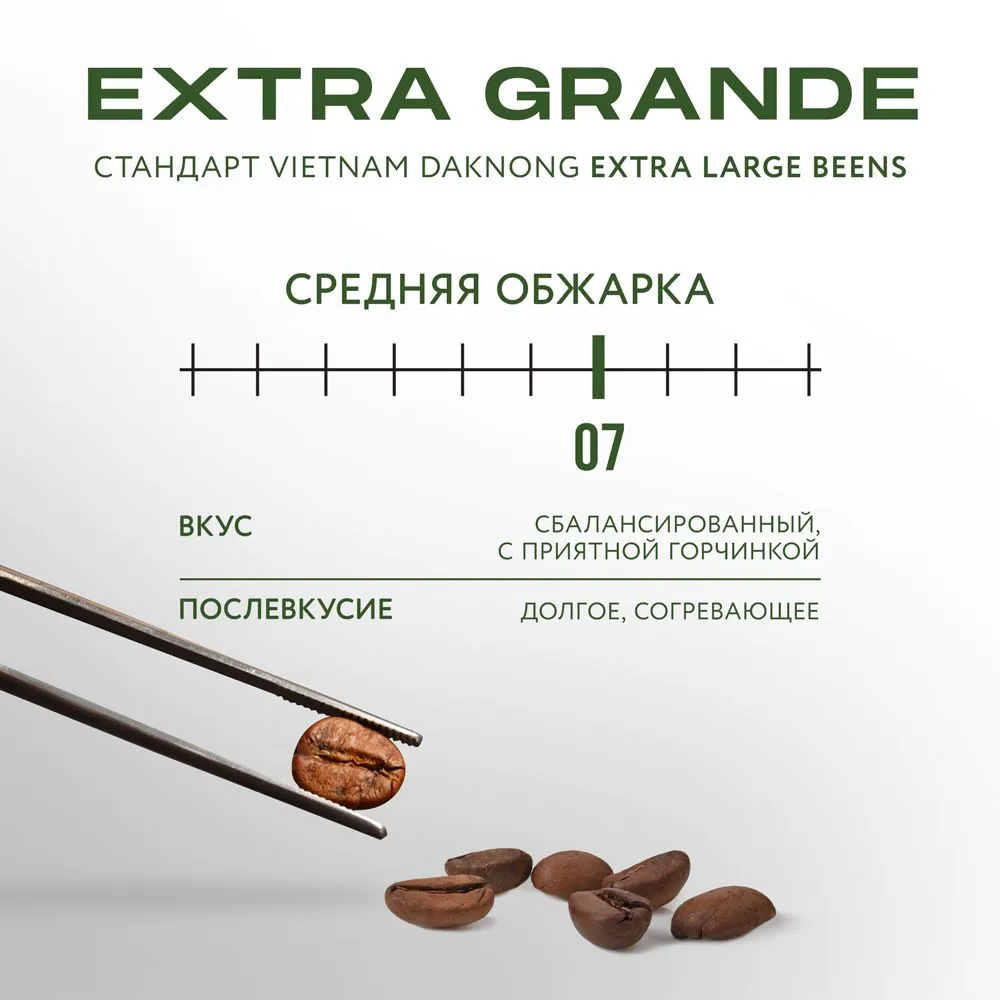 Această cafea va fi cu siguranță pe placul adevăraților cunoscători. condiții de păstrare: A se păstra într-un loc ferit de lumina directă a soarelui, la o temperatură ce nu depășește 30 °C și o umiditate relativă ce nu depășește 75%. ingrediente - 100% Robusta.