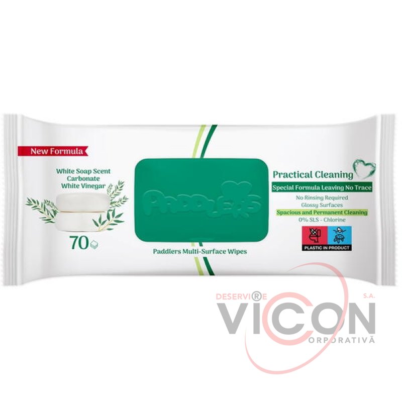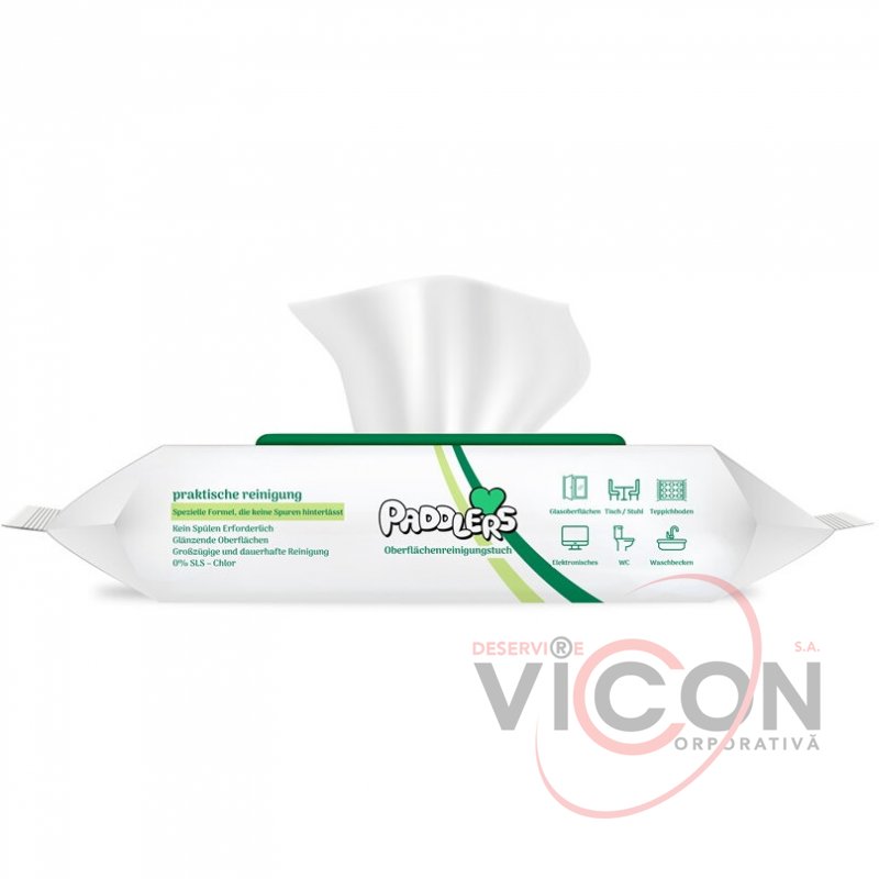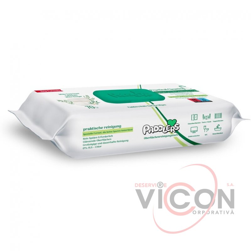 Servetelele de curatare a suprafetelor Paddlers sunt special concepute pentru curatarea rapida si eficienta a tuturor suprafetelor din casa si locul de munca. Datorita parfumului de sapun alb, bicarbonatului de sodiu si otetului alb din compozitia lor, acestea ofera igiena si elimina mirosurile neplacute.