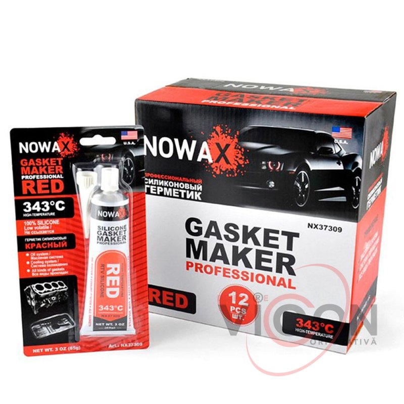 Sigilantul siliconic profesional NOWAX roșu (85 g) poate fi folosit pentru a repara orice motor. Sigur pentru senzorii de oxigen, creează garnituri pentru capacele supapelor, baile de ulei, etanșările mecanice ale colectoarelor, pompele de apă, recipientele de transmisie, carcasele termostatului.