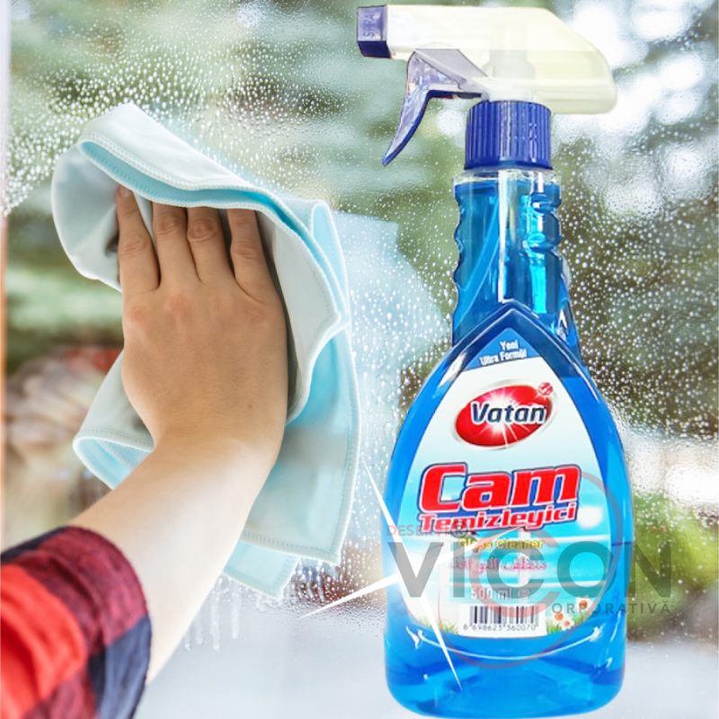 Средство для мытья стёкол Vatan Cam 500 мл Универсальное чистящее средство для мытья окон, зеркал, кафеля, керамической плитки, стекол автомобиля, пластиковых и эмалированных и других поверхностей. Обладает антистатическим эффектом. Придает поверхностям идеальную чистоту и блеск, не оставляет разводов. Производитель: Турция