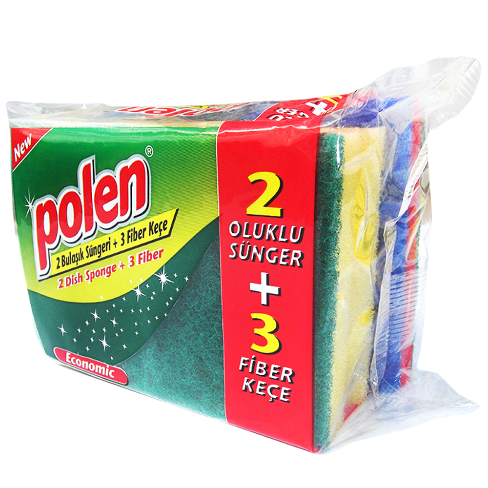 2 губки кухонные + 3 абразивные тряпки, POLEN