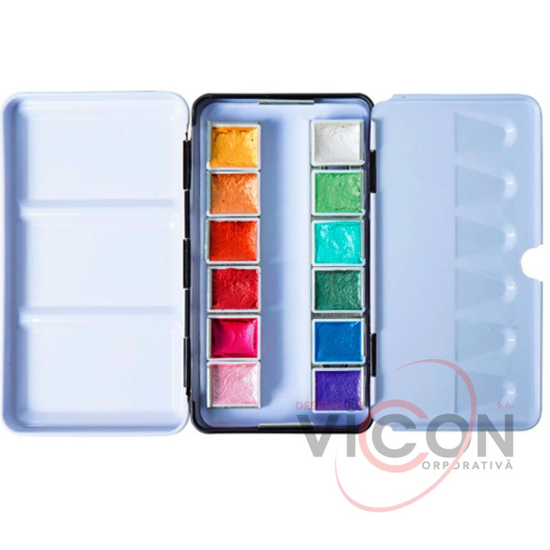 Акварель Conda 12 жемчужных цветов (металлическая коробка)