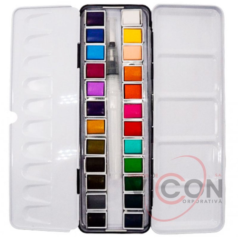 Акварель Conda 24 цвета+кисть резервуар (металлическая коробка)