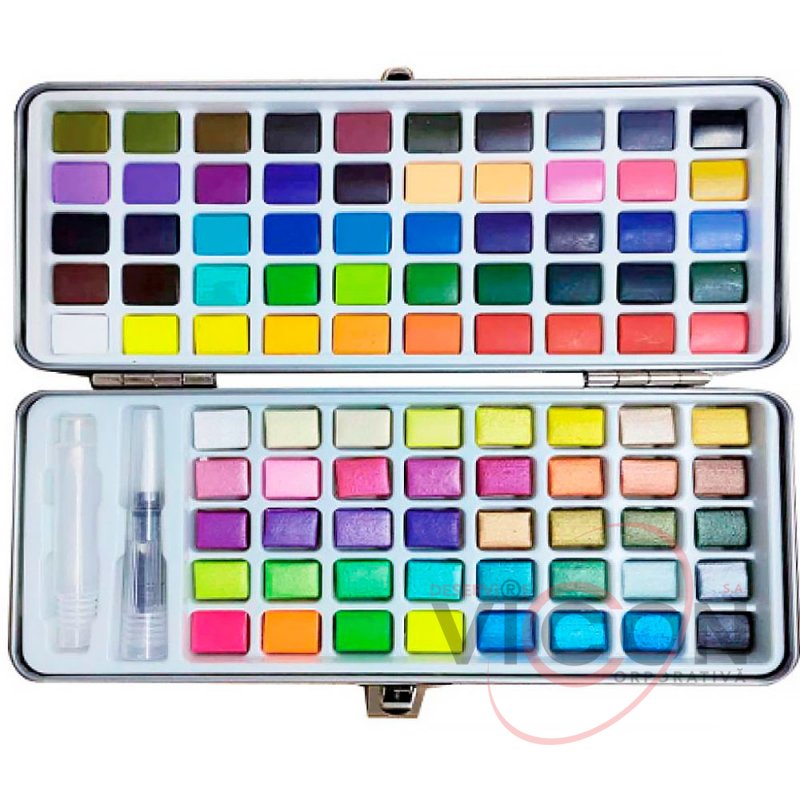 Акварель Conda 90 цветов+кисть резервуар (металлическая коробка)
