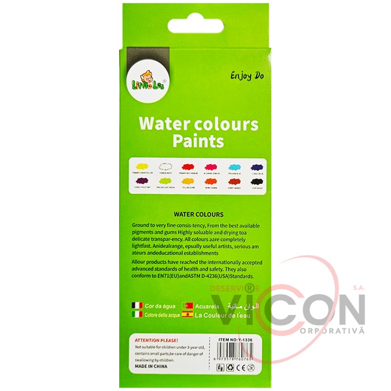 Акварельные краски на водной основе 12 цветов x 12 мл, Little Les ML1-2A