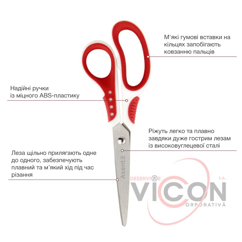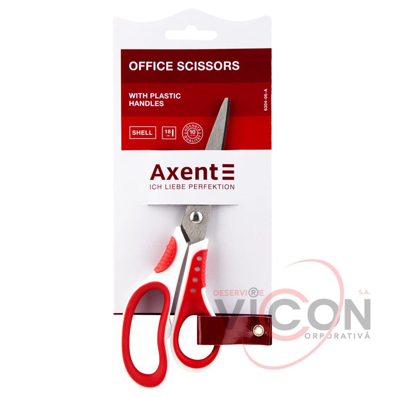 Ножницы Axent Shell 6304-06-A, 18 см, с прорезиненными ручками, бело-красные