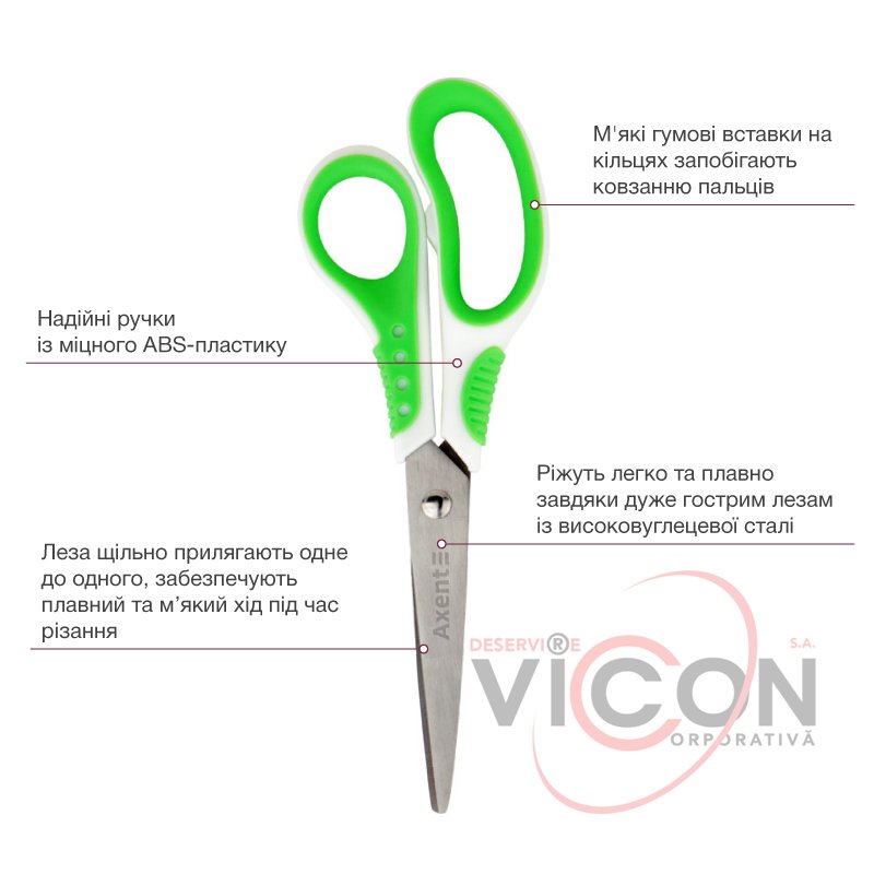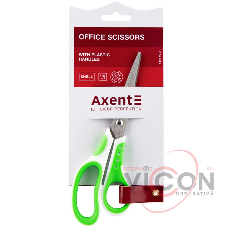Ножницы Axent Shell 6304-09-A, 18 см, с прорезиненными ручками, бело-салатовые