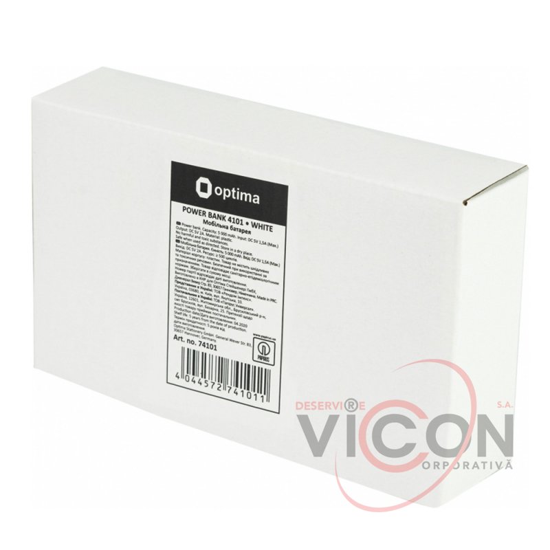 Мобильная батарея (Power Bank) Optima 4101, 5 000 mAh, 2*USB output, 5V 2.1A, белая