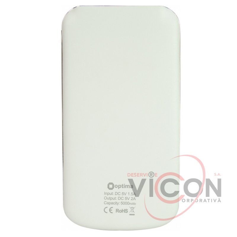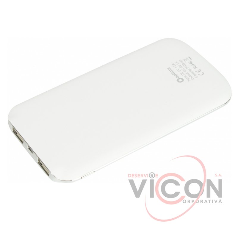 Мобильная батарея (Power Bank) 5 000 mAh, 2*USB output, 5V 2.1A, белая, Optima 4101