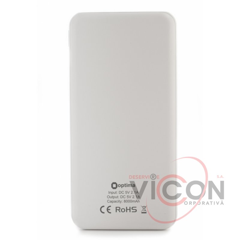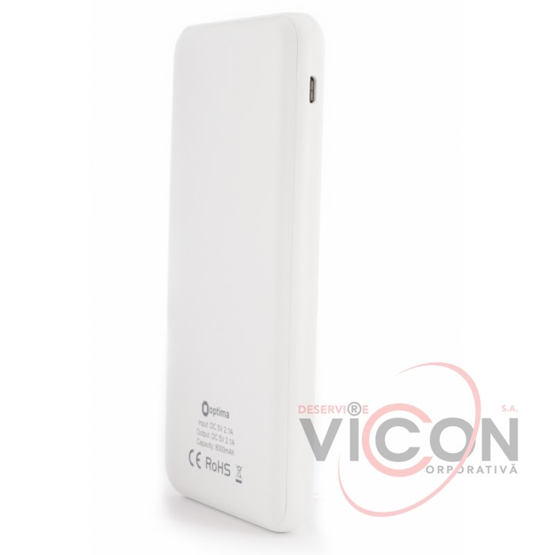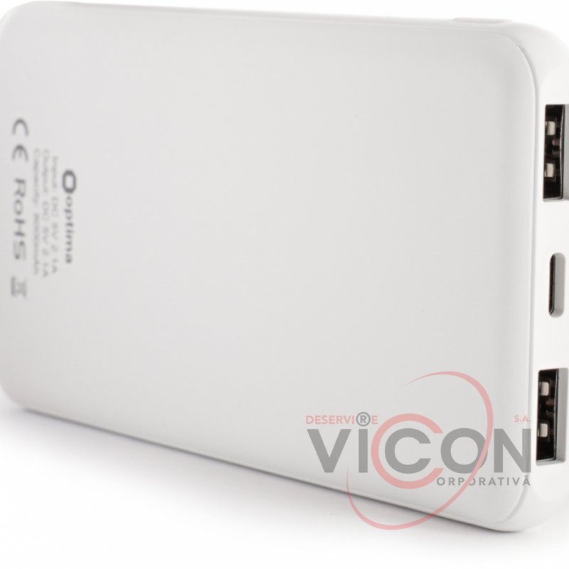 Мобильная батарея (Power Bank) Optima 4110, 8 000 mAh, 2*USB output, 5V 2.1A, цвет белый