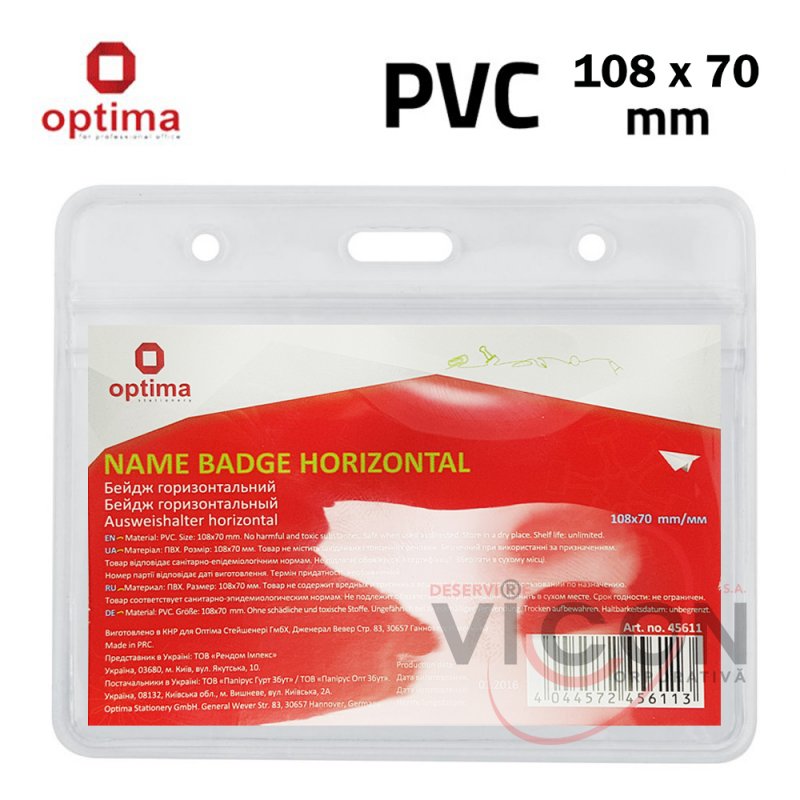 БЕЙДЖ ПЛАСТИКОВЫЙ ГОРИЗОНТАЛЬНЫЙ, 108 x 70 mm, PVC, OPTIMA