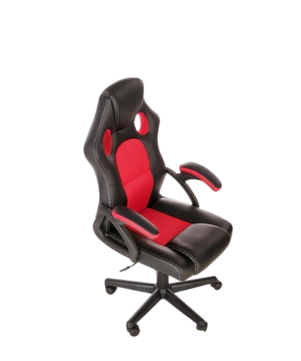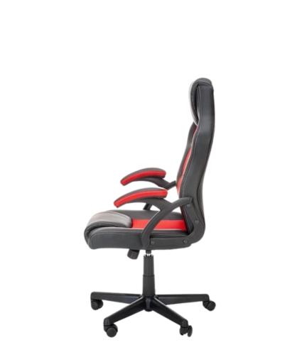 База(крестовина) кресла изготовлена из пластика, ролики - пластиковые. Мягкого сидения и высокая спинка обиты экокожей в сочетании с мембранной тканью.
