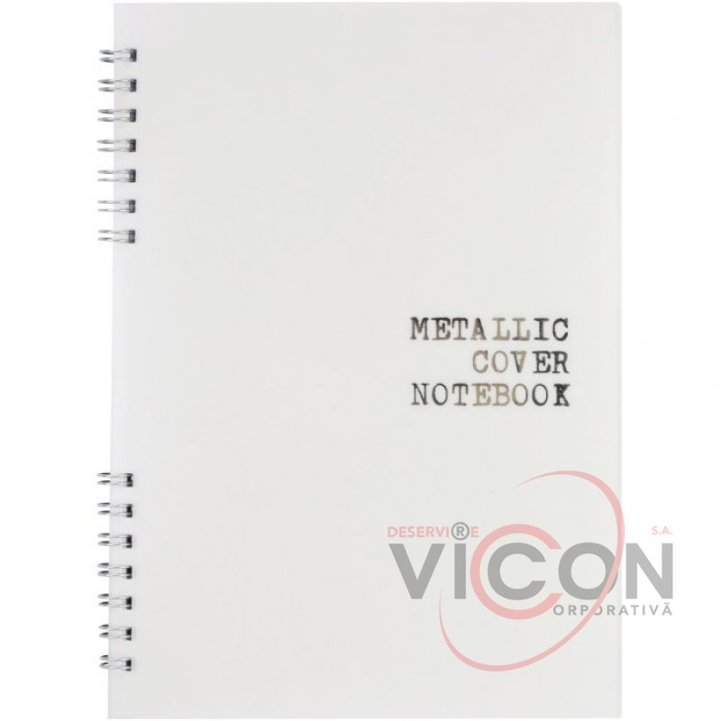 Блокнот А5, пластиковая обложка, металлик, боковая спираль, 60 листов в клетку, белый
