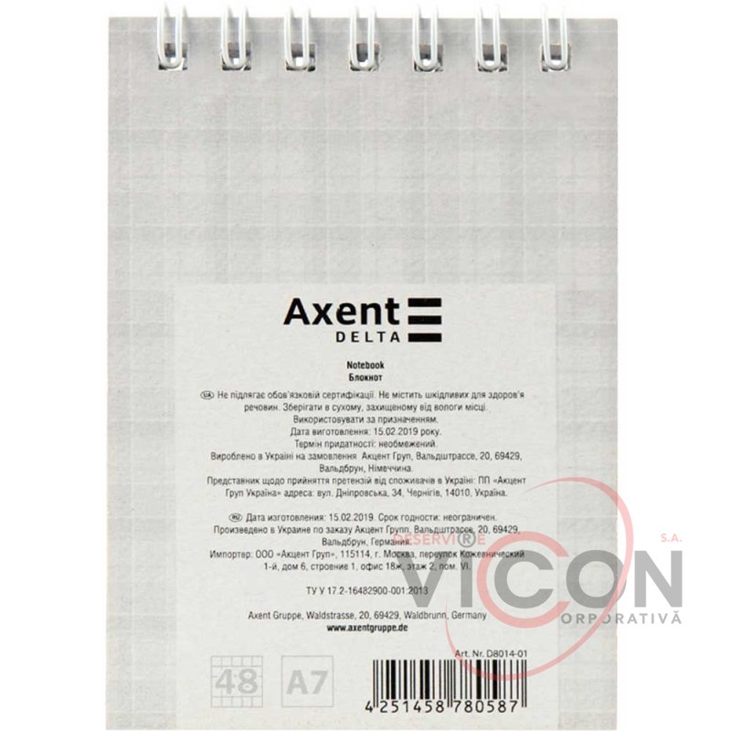 Блокнот на спирали Axent Delta D8014-01, A7, 48 листов, клетка, гибкая обложка