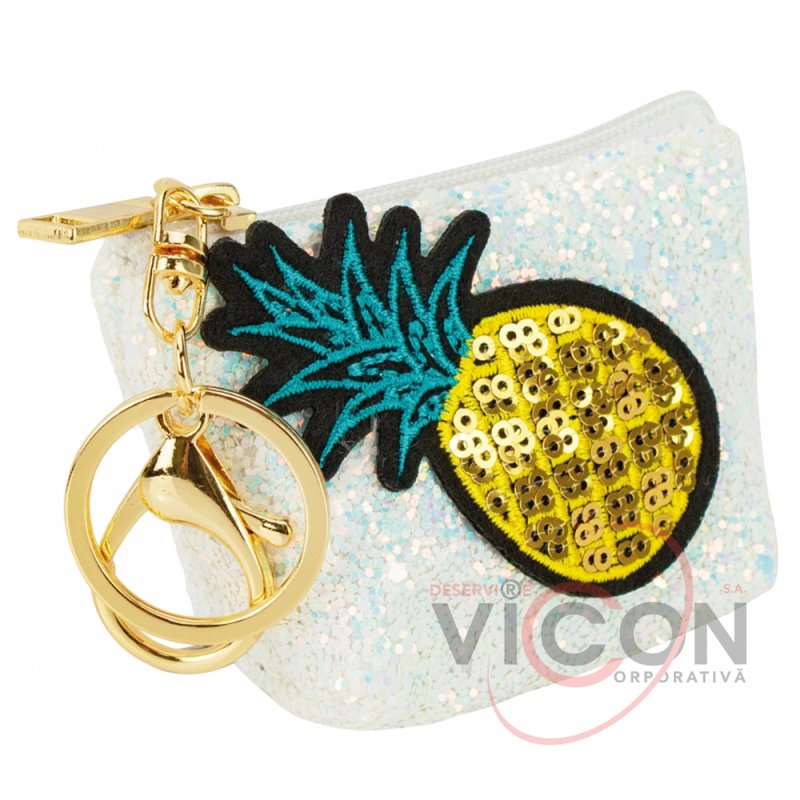 Брелок-кошелек с блестками и аппликацией-Ананас