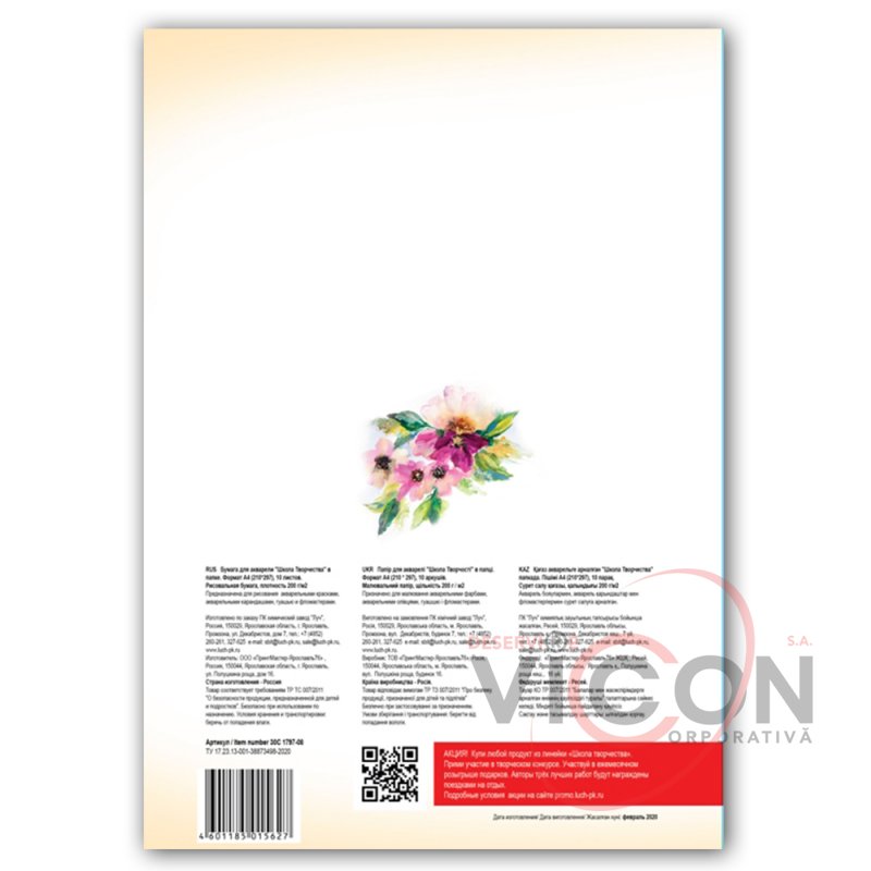 Бумага для акварели "Школа творчества" - высококачественная рисовальная бумага "Гознак". Предназначена для рисования акварелью и гуашью, подойдёт так же для карандашей, пастели и других мягких художественных материалов.