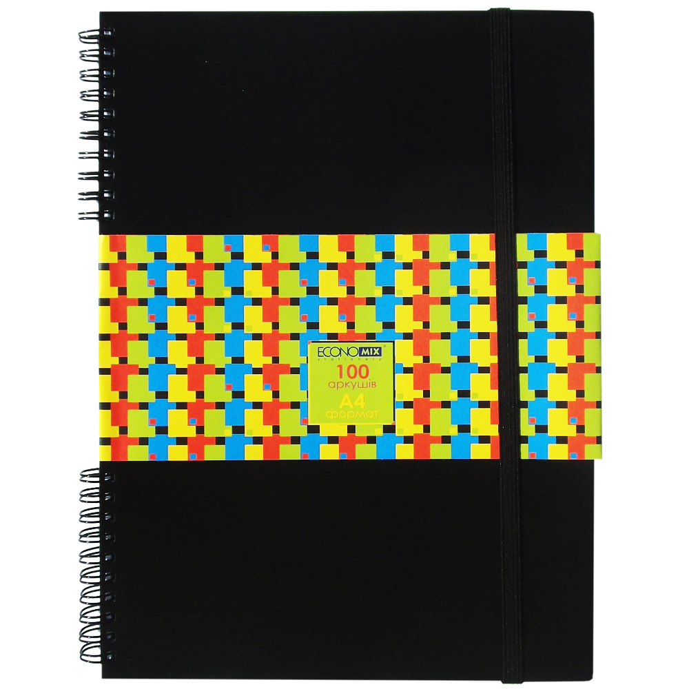Тетрадь А4, 100 листов, на резинке, на боковой спирали, клетка