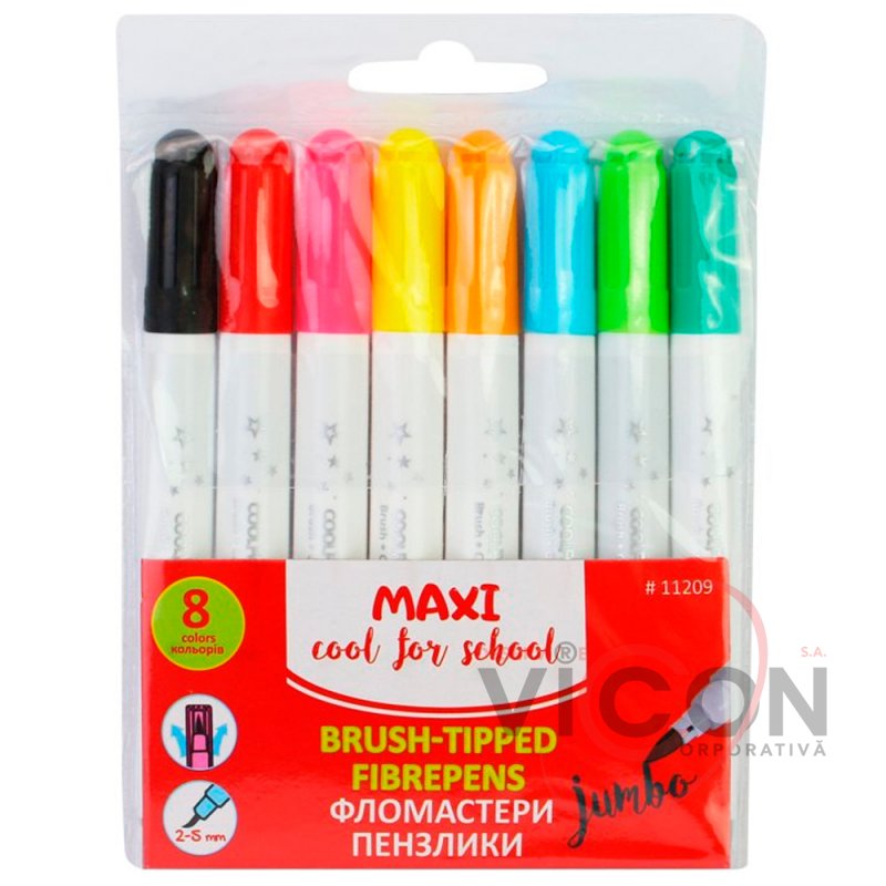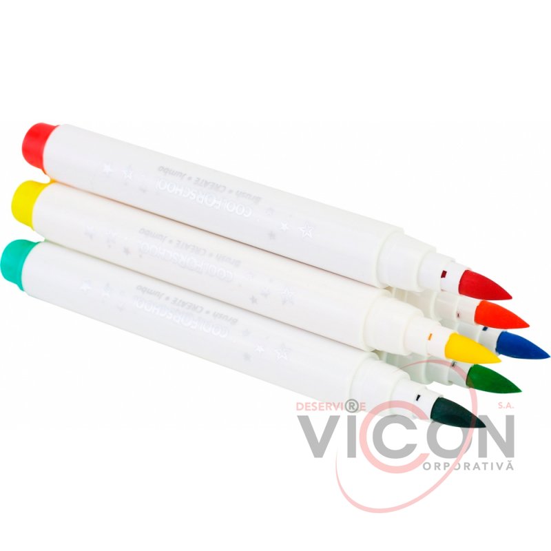 Письменный узел создан в виде кисточки с синтетическим ворсом. Это позволяет наносить линии от 2 мм до 5 мм. Материал корпуса: полипропилен (более гибкий вид пластика). Корпус: круглый. Яркие насыщенные цвета. Чернила на водной основе. Оснащены вентилируемым колпачком, что является более безопасным для детей в случае проглатывания.