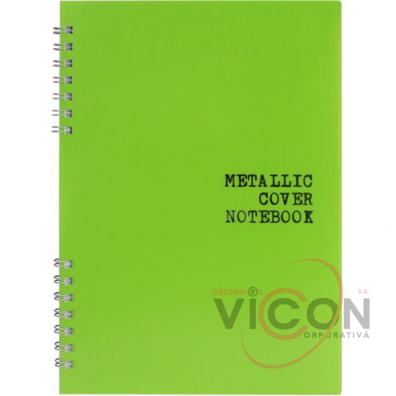 Блокнот А5, пластиковая обложка, металлик, боковая спираль, 60 листов в клетку, зеленый