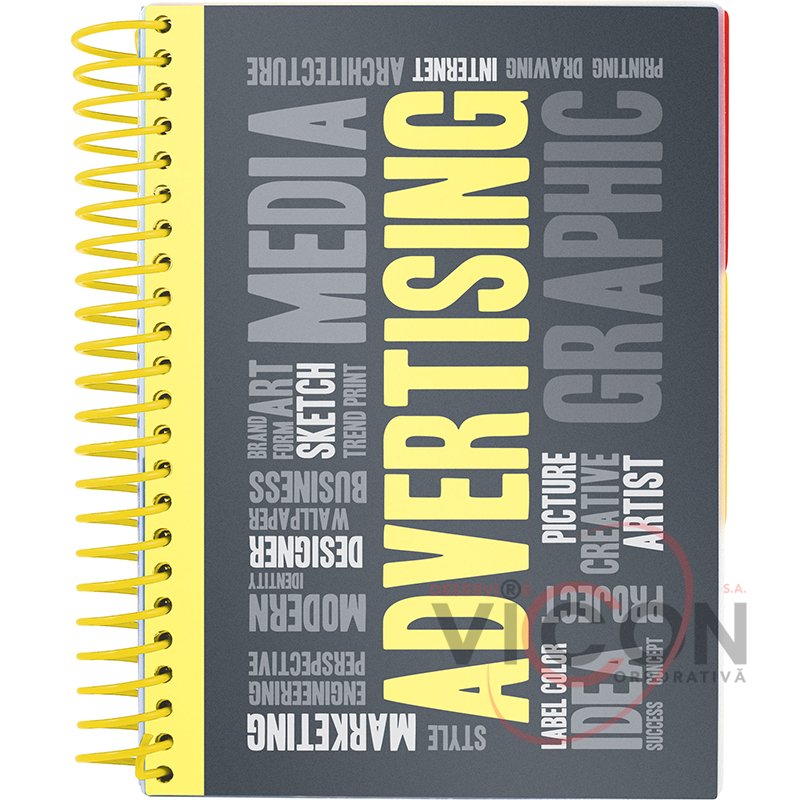 Изюминка блокнота – практичная двойная обложка: из плотного картона и прозрачного пластика. Она надежно защищает листы от повреждений и помогает надолго сохранить блокнот в безупречном виде. Стильный принт с надписями гармонирует с объемной цветной спиралью.