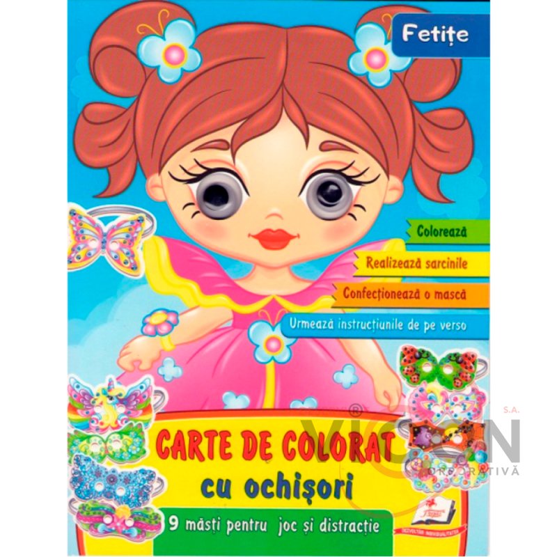 Carte de colorat cu ochisori. Fetite. 9 masti