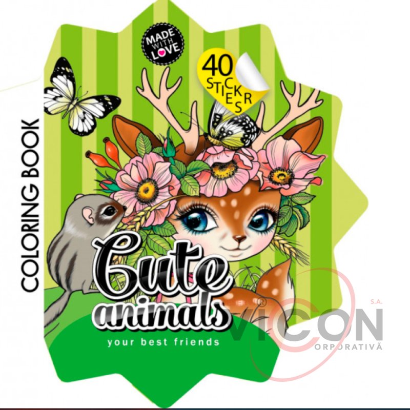 Фигурная раскраска с наклейками, 200х200 мм, 4+2 листа, Cute Animals