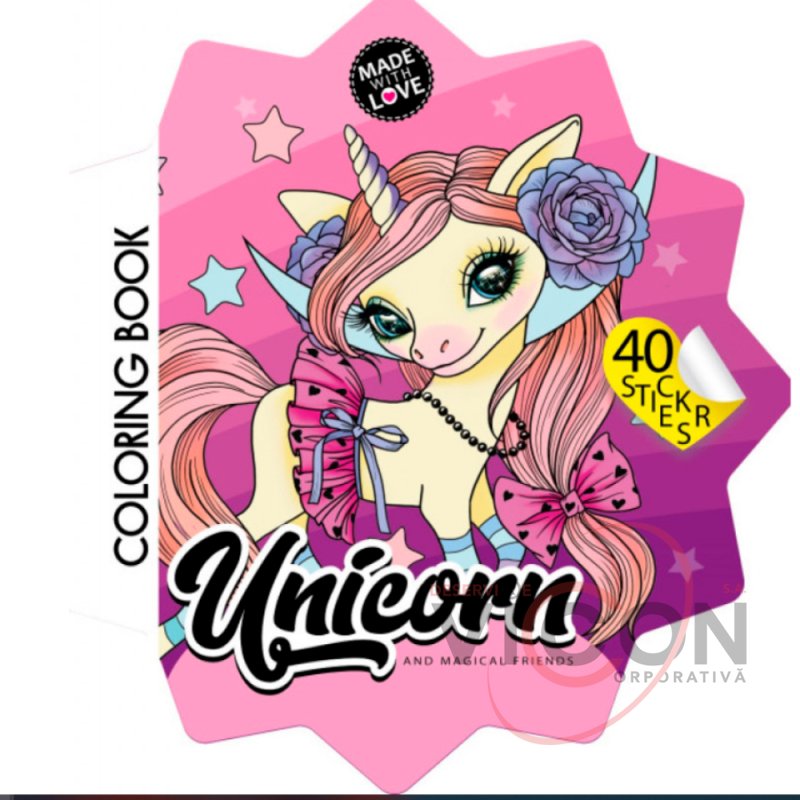 Фигурная раскраска с наклейками, 200х200 мм, 4+2 листа, Unicorn