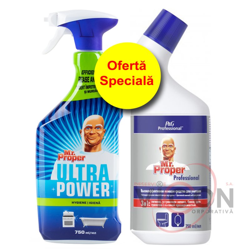 Чистящий спрей от трудносмываемой грязи и жира, Mr.Proper Ultra Power, 750 мл.+ средство для WC Mr. Proper Professional 750 мл
