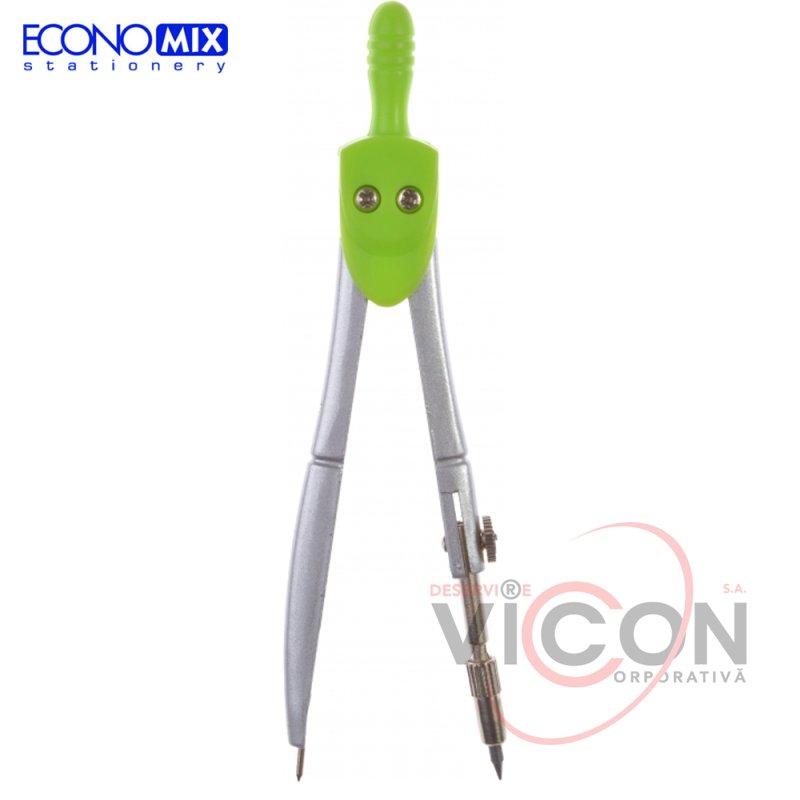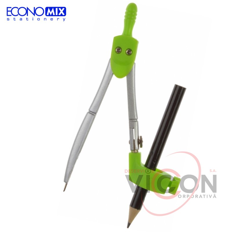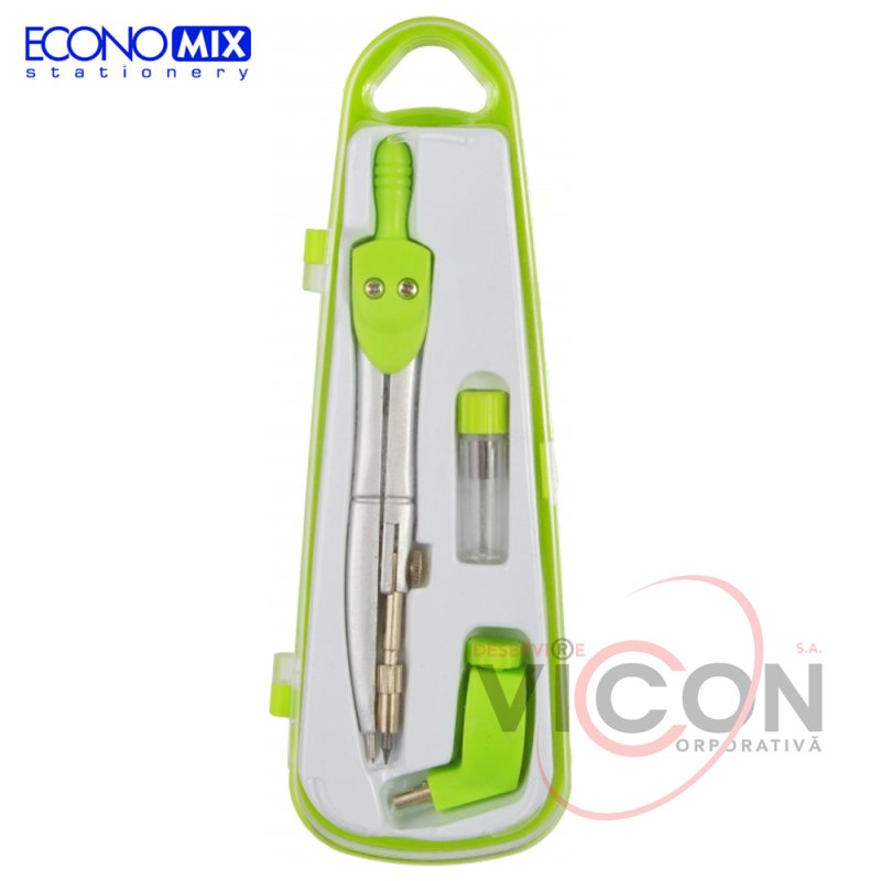 Циркуль с запасными грифелями и адаптером, Economix, зеленый