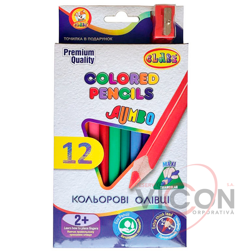 CLASS JUMBO Карандаши цветные трехгранные 12 цветов + точилка