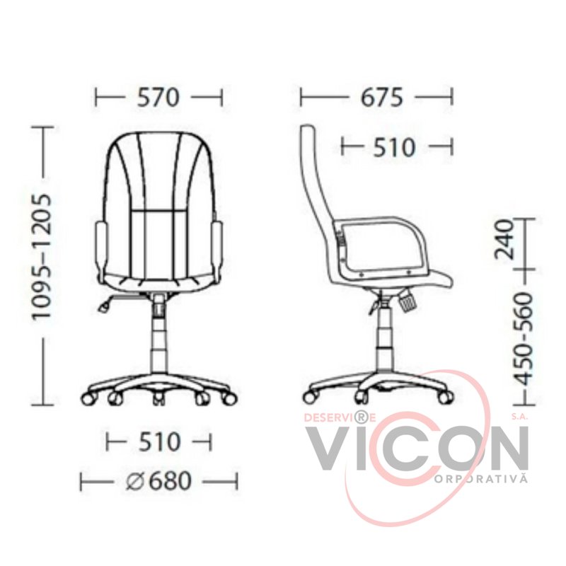 - Высота подлокотников: 69 - 80 см;