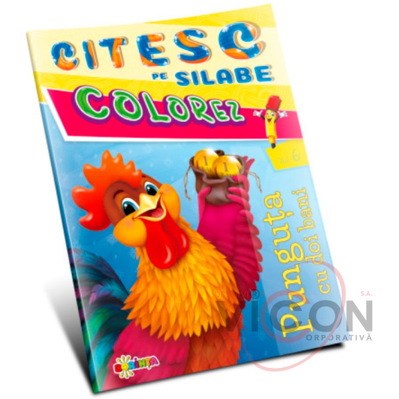Colorez. Citesc pe silabe. Punguta cu doi bani