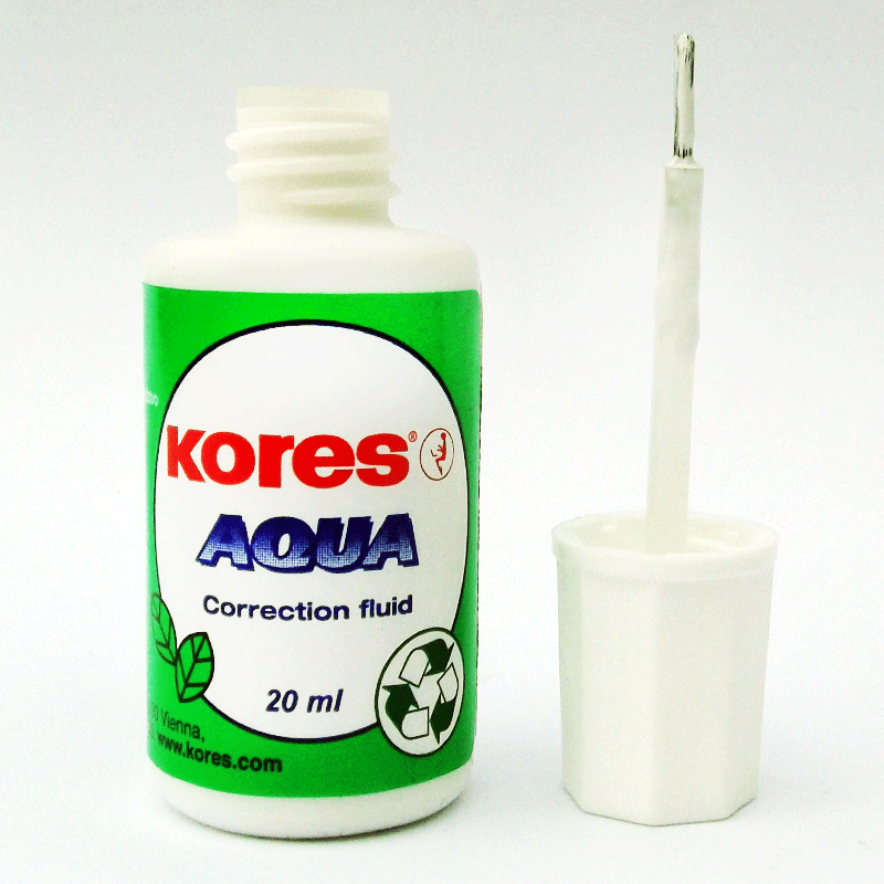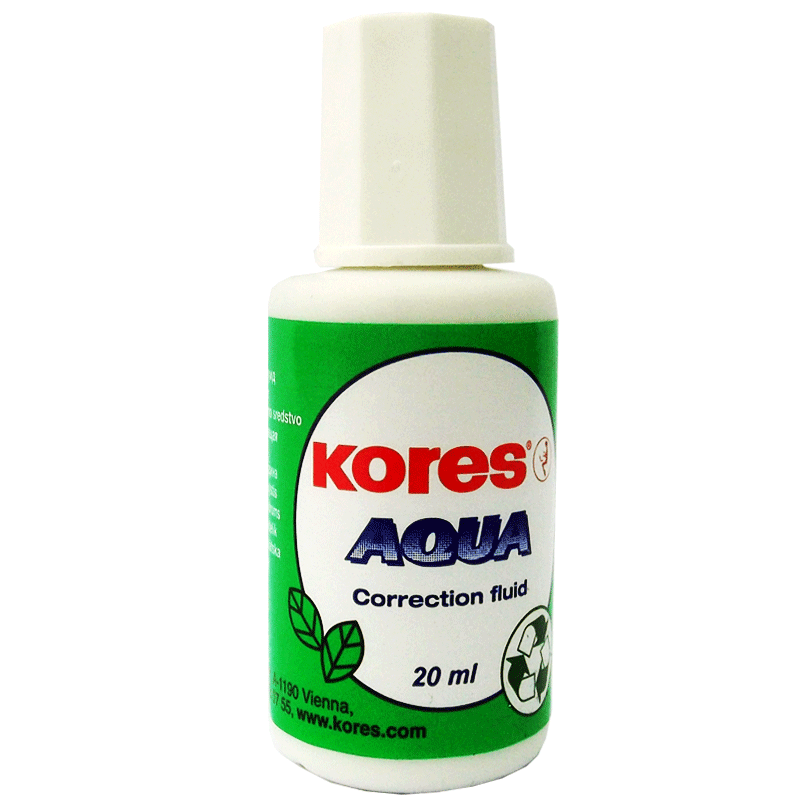 Корректирующая жидкость на водной основе, с кисточкой, KORES AQUA, 20 мл.
