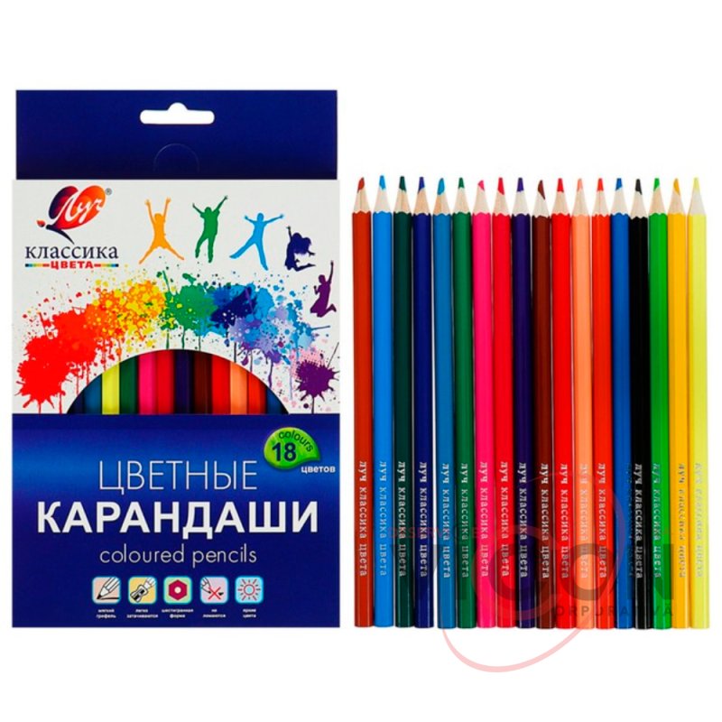 Цветные карандаши 18 цветов Классика, шестигранные, 29C 1711-08 ЛУЧ
