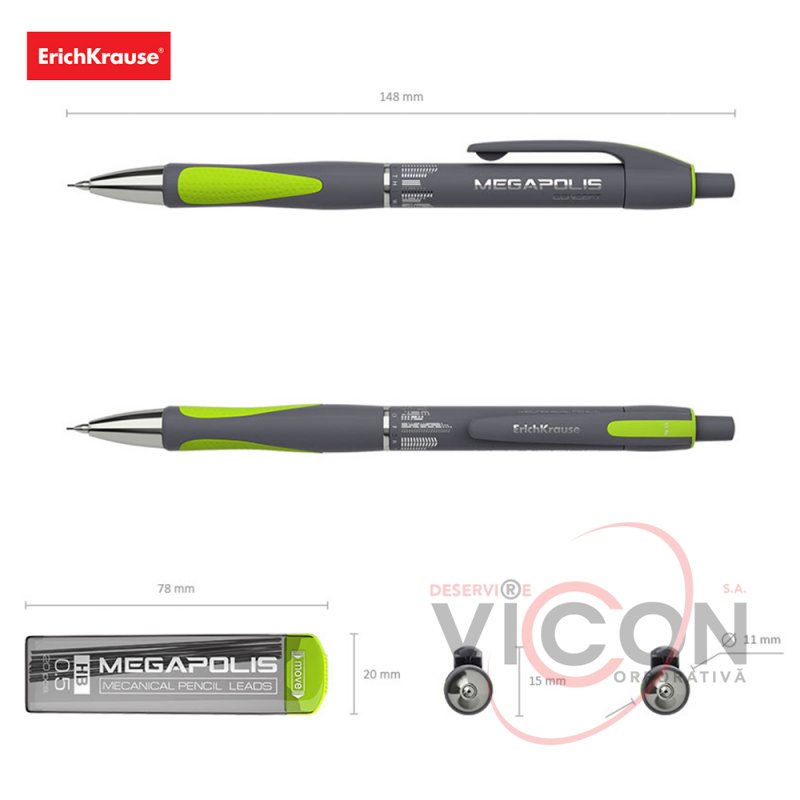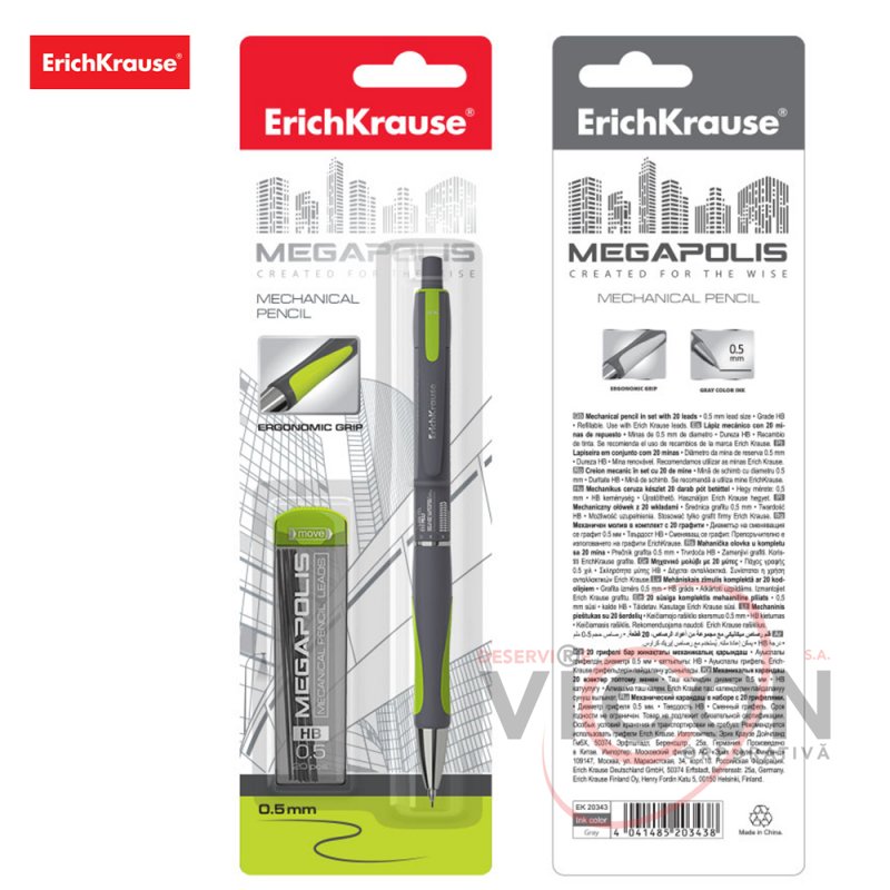 Карандаш механический ErichKrause® MEGAPOLIS Concept в наборе с 20 грифелями 0.5 мм, НВ (в блистере по 1 шт.)