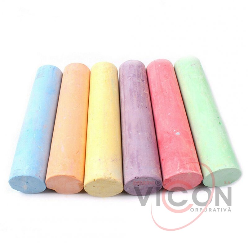 Количество цветов: 6; изготовлен из высококачественного сырья; не крошится; предназначен для рисования на асфальте, школьной доске, дереве, бетоне и др. шероховатых поверхностях.