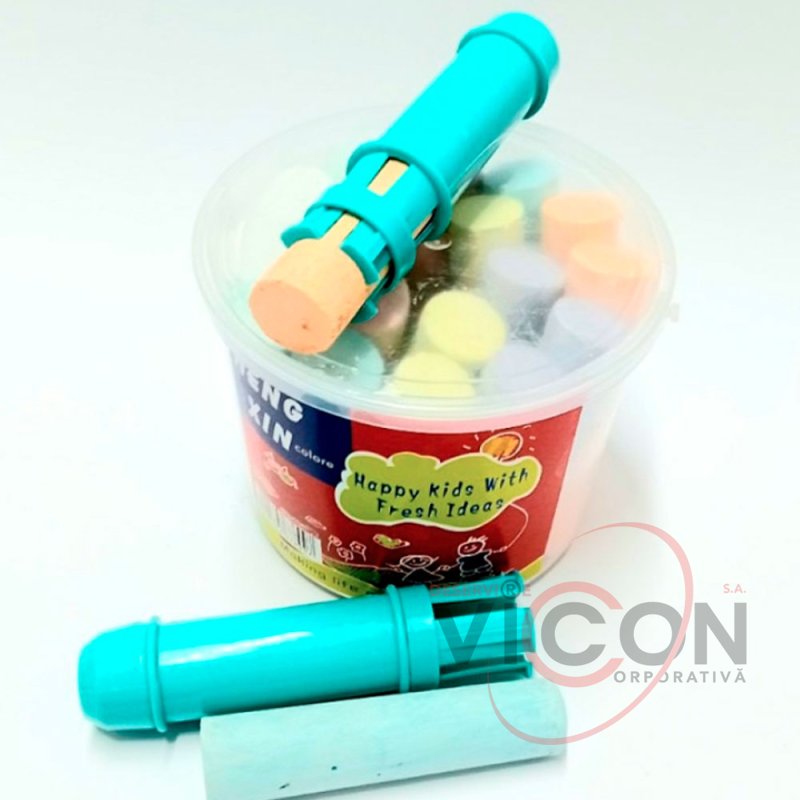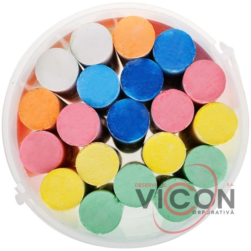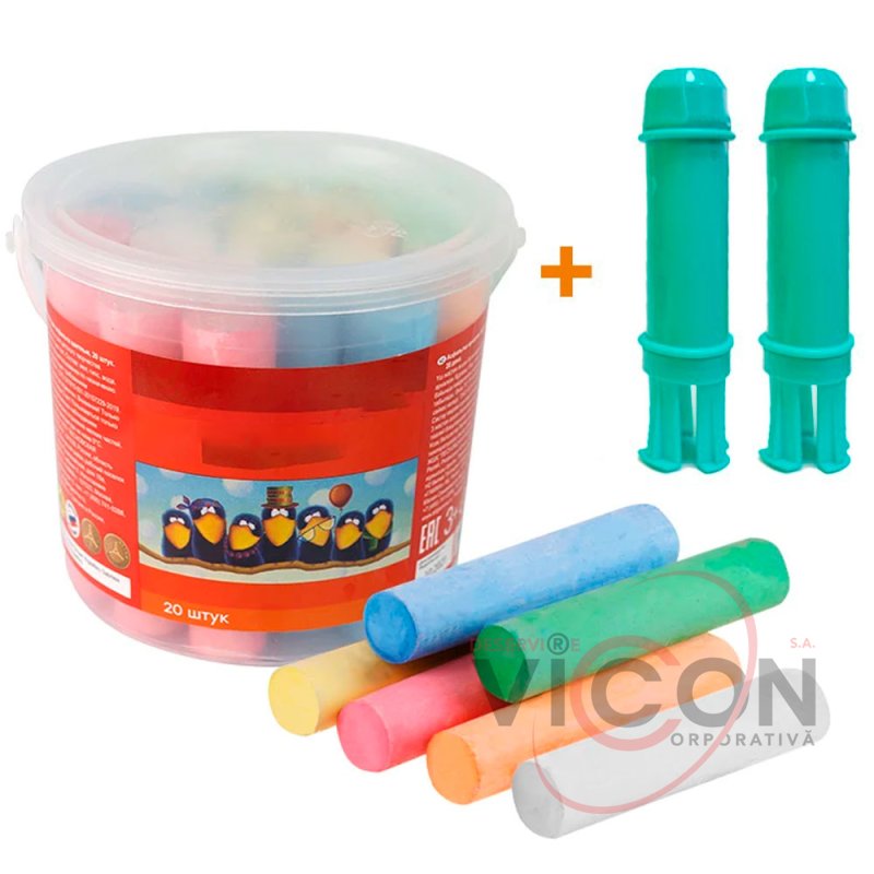Мел цветной, 20 шт, круглый + 2 держателя, для асфальта, пластиковое ведро