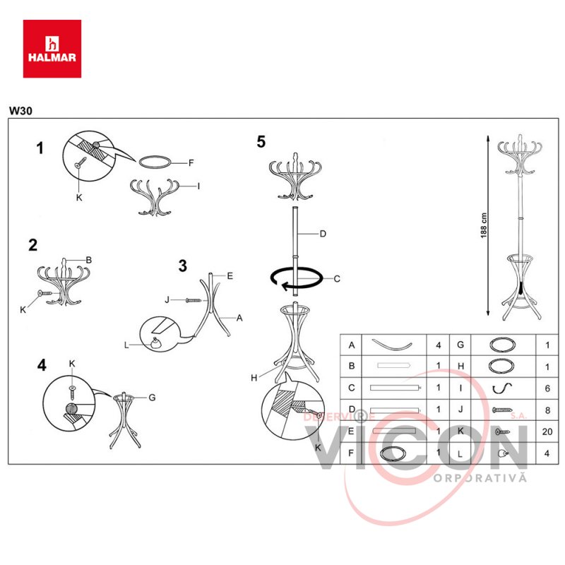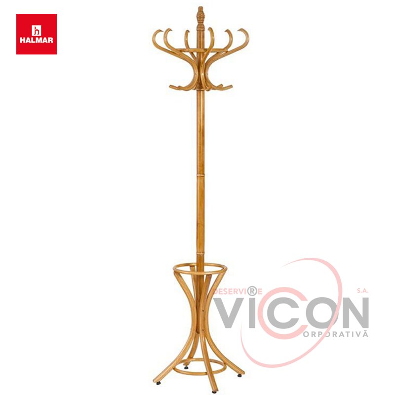 Вешалка W30 HALMAR (ольха) – напольная деревянная вешалка для одежды польской компании Halmar (Хальмар) с большим количеством различных крючков и удобной подставкой для зонтиков. Изготовлена из натурального гнутого дерева в цвете ольха.Высота 188 см