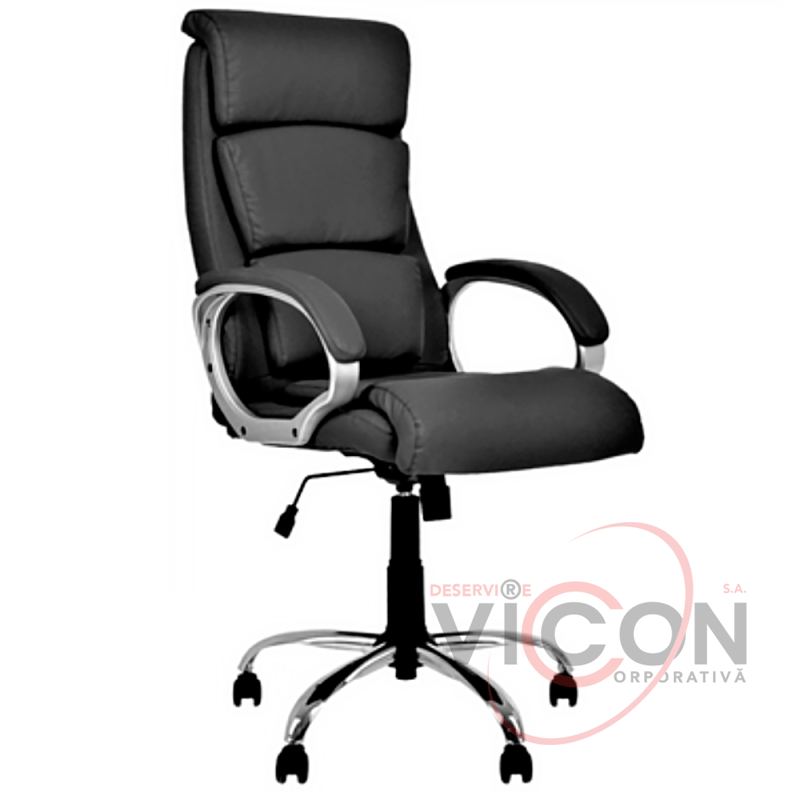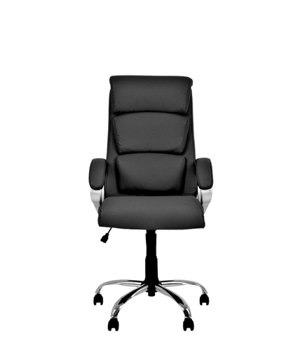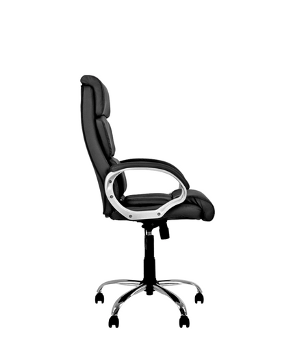 Пластиковые подлокотники с обитыми мягкими накладками. Хромированная металлическая база и пластиковые ролики.