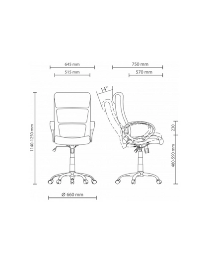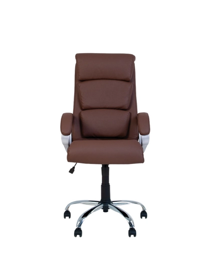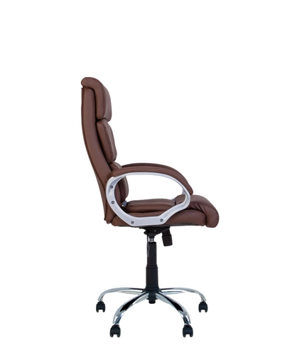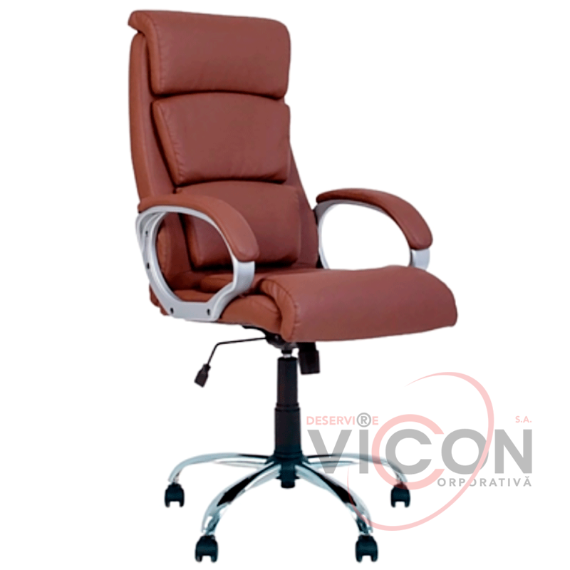 Пластиковые подлокотники с обитыми мягкими накладками. Хромированная металлическая база и пластиковые ролики.